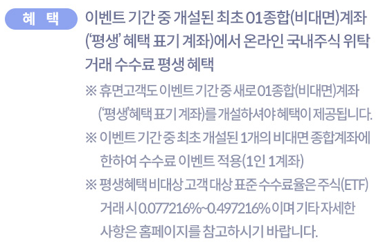 비대면 계좌를 최초로 만들면 앞으로 평생 혜택 받을 수 있습니다. 꼭 반드시 비대면으로 계좌 개설한 고객들에게만 적용되는 혜택이니 삼성증권 지점에서 계좌를 개설하게 되면 혜택을 못 받으니 주의하시기 바랍니다.